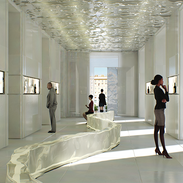 Lo spazio di vendita, di maggior rilevanza, è articolato come un vero e proprio percorso espositivo che vede il singolo prodotto esposto in una teca e accompagnato da una breve descrizione. L’allestimento essenziale elimina le superflue ridondanze dell’esposizione tradizionale e permette quindi una maggior concentrazione del cliente sul prodotto in sé.